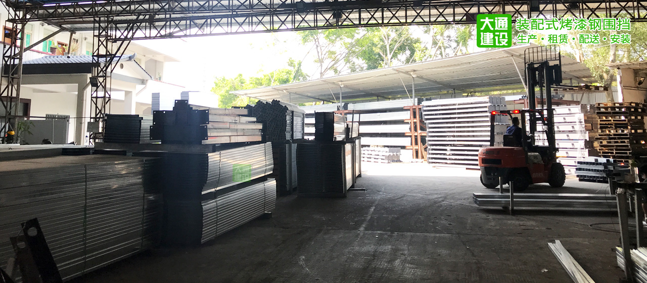 2017年深圳市大通建設發(fā)展有限公司投資大量資金,在東莞市建立了新型裝配式鋼結構圍擋加工生產(chǎn)基地,占地面積約2萬平米,是目前整個廣東地區(qū)規(guī)模最大最全的鋼結構圍擋生產(chǎn)基地。
